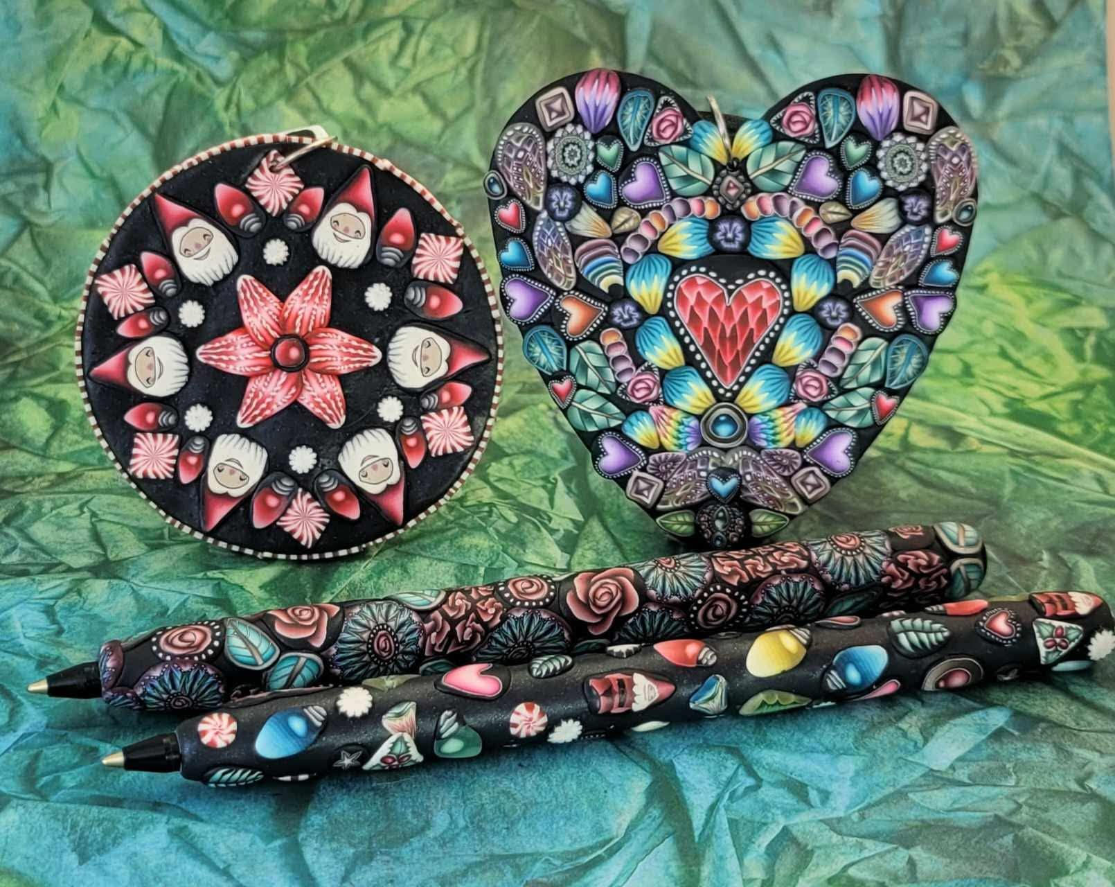 In this class you will be decorating 2 flat ornaments (1 large heart, 1 medium circle) and 2 desk pens with polymer clay. This is a beginner class, no experience […]